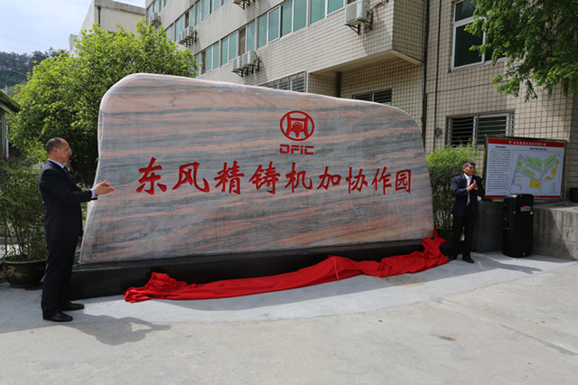 會前,我公司舉行東風精鑄機加協(xié)作園開園儀式,零部件集團總經理翁運忠與杜孔明總經理共同為協(xié)作園開園揭牌。