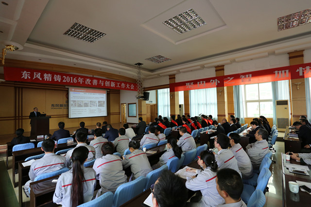 4月22日下午,東風精鑄召開2016年改善與創(chuàng)新大會,此次大會是精鑄公司自1994年以來,連續(xù)召開的第22次改善與創(chuàng)新(科技大會)大會。東風汽車零部件(集團)有限公司總經理翁運忠、副總經理韓力、零部件部分子公司代表、全體中高管、專業(yè)技術人員及員工代表出席大會。
