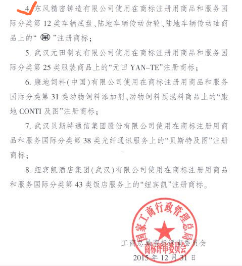 2015年12月31日,根據(jù)國家工商總局商標(biāo)評審委員會商評馳字[2015]53號文件通告,東風(fēng)精鑄“和鼎”圖形商標(biāo)(商標(biāo)注冊證號4055897/12類),被國家工商行政管理總局認定為“中國馳名商標(biāo)”。“和鼎”商標(biāo)成為東風(fēng)汽車零部件(集團)有限公司首個成功注冊并入選中國馳名商標(biāo)的汽車零部件品牌。