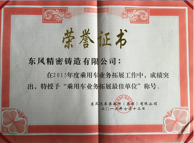 7月16日,東風(fēng)零部件集團(tuán)公司召開營銷系統(tǒng)工作會,并對“十二五”期間市場結(jié)構(gòu)轉(zhuǎn)型突出的單位進(jìn)行表彰,東風(fēng)精鑄榮獲乘用車業(yè)務(wù)拓展最佳單位。