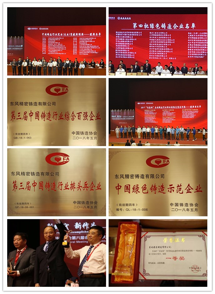 東風(fēng)精密鑄造有限公司全硅溶膠薄殼技術(shù)榮獲中國(guó)精鑄技術(shù)創(chuàng)新獎(jiǎng)。