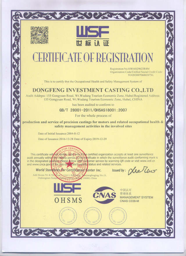 2016年12月通過OHSAS18001標(biāo)準(zhǔn)復(fù)審